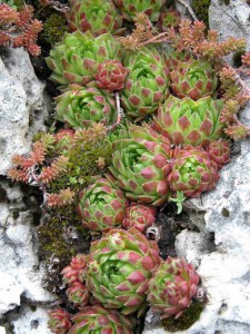 Penso che se si dovesse fare una stima di quante piante, appartenenti ai generi Jovibarba e Sempervivum, siano coltivate nei balconi e nei terrazzi del milanese, il conto potrebbe essere facilitato da un semplice assioma: “Chiunque abbia un balcone e non cura le piante possiede sicuramente in un vaso o in una fioriera abbandonata, un esemplare appartenente al genere Jovibarba o al genere Sempervivum“. Perché abbiamo deciso di accomunare i due generi? La motivazione è molto semplice; si assomigliano molto, soprattutto agli occhi di un inesperto! L’unico fattore che ci aiuta a distinguere con una certa sicurezza i due generi sono le infiorescenze. Nel caso delle Jovibarba i fiori hanno solo 5-7 petali con punte pelose e una “tinta” unica verde-gialla. Al contrario, le Sempervivum espongono fiori con 8-16 petali glabri dai più svariati colori! Inoltre questo genere ha più specie/varietà ed è facilmente incrociabile per creare ibridi. Sia le Jovibarba che le Sempervivum appartengono alla grande famiglia delle Crassulaceae che ha una diffusione areale su tutti i continenti (Antartide escluso!).
